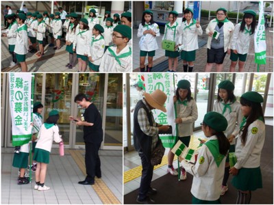 結団式の後は、最初の活動として、緑の羽募金を行いました。