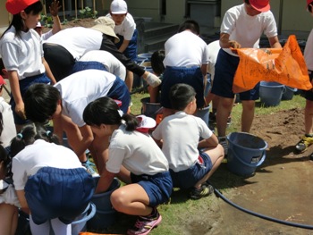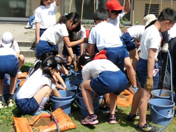 8/12 思い出のアルバム バケツ稲 5年生