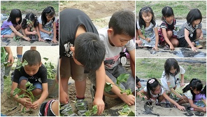 6月上旬にサツマイモの苗を植えました。天気のよい日が続いて、生長するか心配でしたが、子どもたちが一生懸命世話をしたため、しっかりと根付き大きくなってきました。