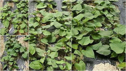 一番下は、7月中旬のものです。畑いっぱいに広がり、通路にも蔓が伸びてきました。大きなサツマイモが収穫できそうですね。