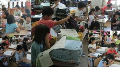 教室を見て回りましたが、提出物を出したり、先生の話を聞いたりしていました。また、友達とも仲良く話していましたね。夏休みも後10日になりました。やり残したことがないか確認するのによい時期ですね。