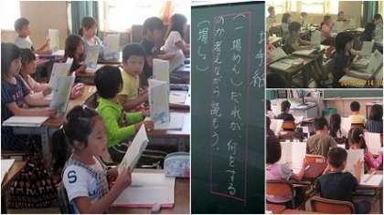 先ずはみんなで群読です。元気な声が教室に響いていました。