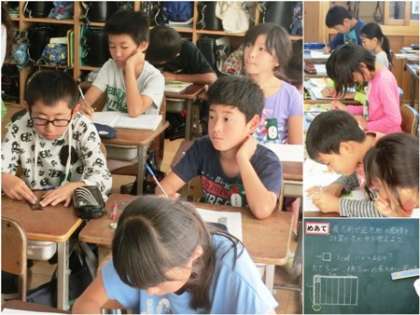 長方形、正方形の面積を求めます。面積の公式の意味を知るために、長方形のなかに、1辺が1cmの正方形をかきました。こうすると、長方形の公式の意味が分かりますね。