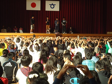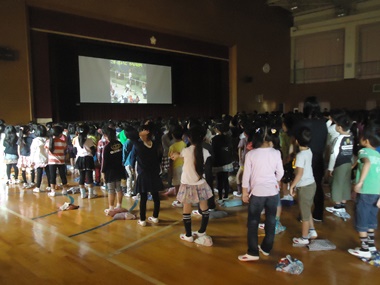 今日は体育館で集会がありました。