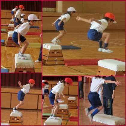 跳び箱の上でポーズを取っている子もいました。また、おり方がかっこいい子もいましたね。