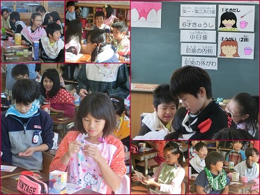 歯の染め出しをしました。毎年行っていると思いますので、少しは歯の磨き方は上手になりましたか?「8020運動」を知っていますね。80歳まで自分の歯を20本もつ運動のことです。そのためにも、今日学んだ歯の磨き方をしっかり身につけてほしいと思います。