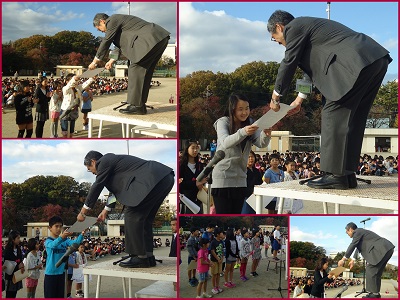 産業まつりのときの写生大会、行政相談週間の習字、スポーツ関係、MIMコンテスト、囲碁、FBCなど、本当に様々な種類の表彰でした。それだけ子どもたちはいろいろな分野で頑張っています。本当におめでとう。
