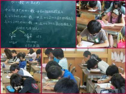 学習した概数について復習のプリントを行いました。