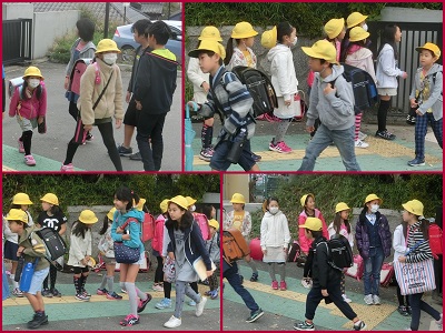 今日は、4年2組、2年2組があいさつ運動を行いました。