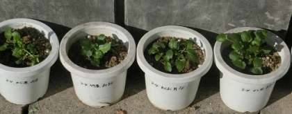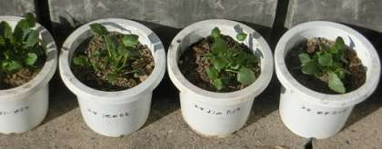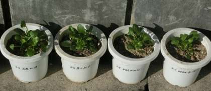 子どもたちの手で、パンジーの鉢植えが始まりました。