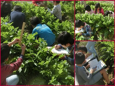大きくなった畑の大根を観察しました。