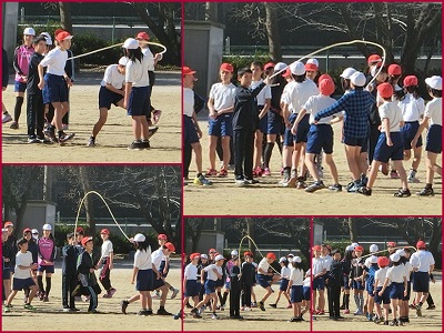 5年生になると、縄をまわす速さが早くなりますね。回数を跳ぶには、そうしないといけません。もっとたくさん跳ぶには、もっと早くまわさないといけません。縄に入る人のテンポが問題ですね。