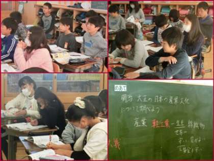 明治維新から近代日本が始まりました。この授業では産業について考えました。ちょうど今、大河ドラマでは明治維新後が舞台となっています。特に生糸の生産を高めるために、富岡製糸場(世界遺産)の近代化も描かれています。近代日本の夜明け、考えるところもたくさんありますね。