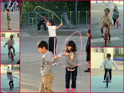 学校に登校してから、すぐ運動場や中庭に出てくる子どもがいます。寒さに負けず元気に遊んでいます。今、なわとびをしている子を見かけます。体育でも取り上げているからですね。