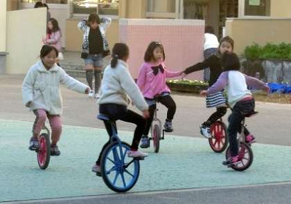 また、一輪車はいつも多くの子どもたちが活用しています。最初は乗れなかった子どもも、練習している内に上手になってきました。努力のたまものですね。