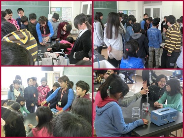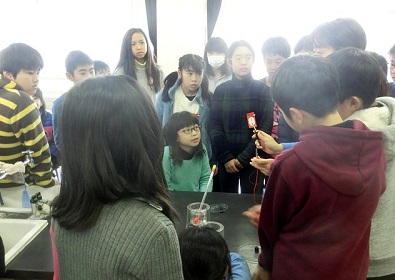先生がまず実験をして、子どもに実験の仕方を指導しました。その後、グループで実験を行いました。実験の手順がよくわかりましたね。