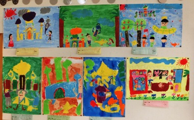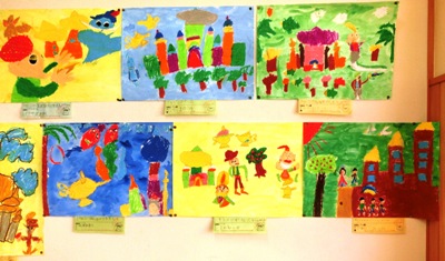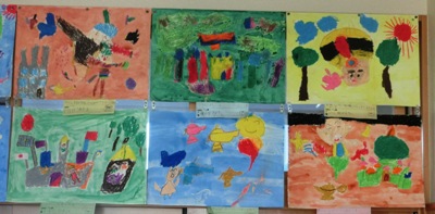 クレパスで描いたところに、絵の具を塗って仕上げました。上手にできましたね。