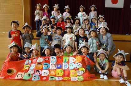 こいのぼり集会で、最後は学級みんなで写真撮影。楽しかったですね。