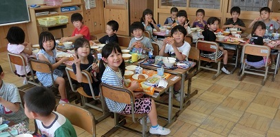 今日は、ハンバーガーですね。自分ではさんで食べられましたね。