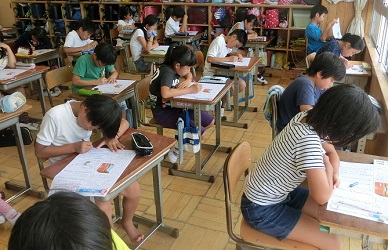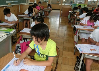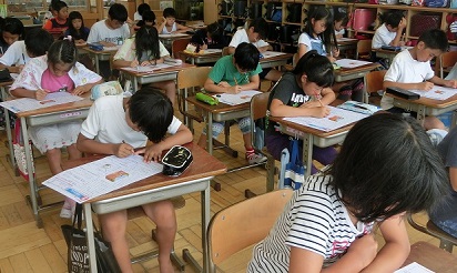1,2時間目にプールで泳いで、3時間目にテストをしていました。さすが5年生は集中して取り組むことができています。