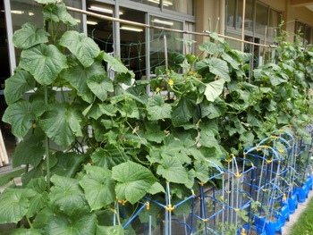 2年生が育てている野菜に花が咲き始め、実もつき始めました。大切に育てているからですね。収穫が楽しみですね。