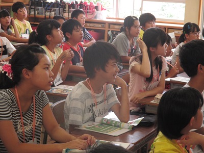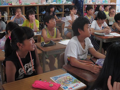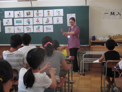 「Ican〜」の言い方使い方を学んでいました。自分ができることの中から,1つ選んで絵に描いて発表するよう指示されていました。
