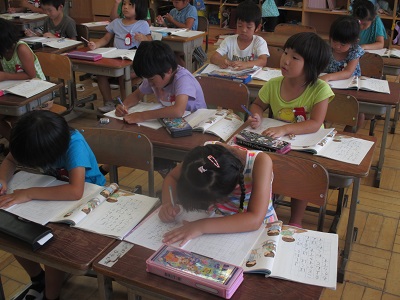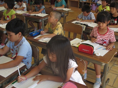 自分の伝えたいことを作文で書きます。まずはお手本の文章をまねて,原稿用紙の書き方を学びました。