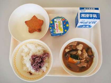 きょうは「七夕献立」ということで、星型コロッケと七夕ゼリーがついていました。