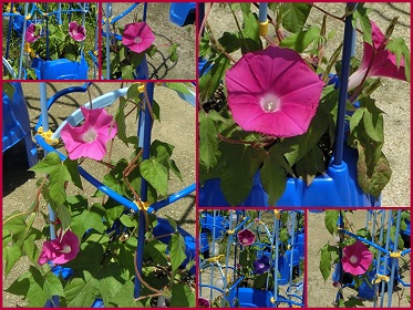 1年生が大切に育てているアサガオがたくさん咲いています。けれども、保護者会の後、保護者の方に持ち帰っていただいているため、学校においてある数が少なくなってきました。残念ですが、仕方ないですね。