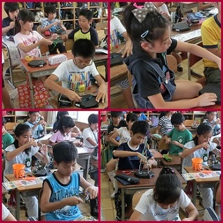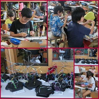 針金を自分の好きな形に曲げて作品を作ります。針金以外にも、様々なものを飾りとして使っています。建物や動物を作った子が多かったように思います。