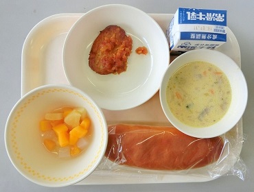 ミルクロール、かぼちゃのスープ、ナタデココポンチ