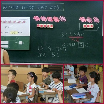 ひき算の式の書き方、答えの書き方を教えてもらいました。丁寧な説明だったので、みんなノートに書けていましたね。