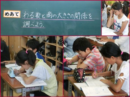 わる数と商の大きさの関係を調べます。どのような関係にあるのでしょう。実際にいくつか計算すると分かりますね。