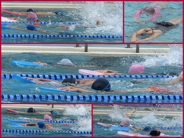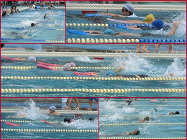 25メートル泳げるようになろうと、一生懸命練習していました。まずはバタ足から。ビート板を使ってバタ足の練習をしました。泳げる子は、どんどん泳いでいましたね。