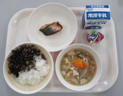 けんちん汁は、ごぼうや大根やにんじんなど、根菜がたくさん入っていました。味付けがよくて、野菜が苦手な子もきっとしっかり食べられたことと思います。