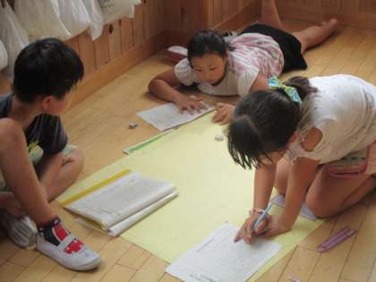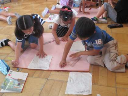 「水博士になろう」で水について調べてきたことを、壁新聞にまとめています。