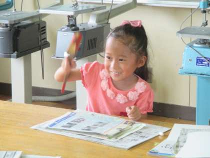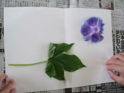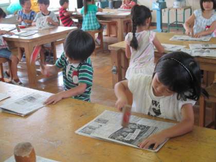 どんなふうに染まるのかワクワクしながら、楽しそうに木づちでたたいていました。