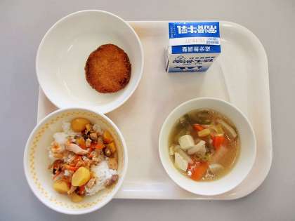 今日は夏のように暑い日になっていますが、給食は本当に秋らしいメニューでした。