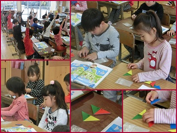 色板を使って、教科書にある図形をつくりました。