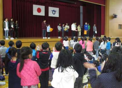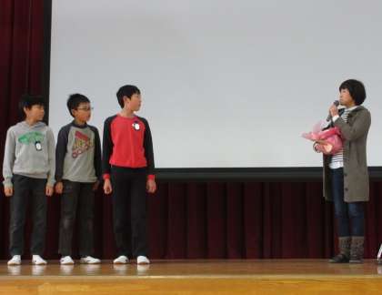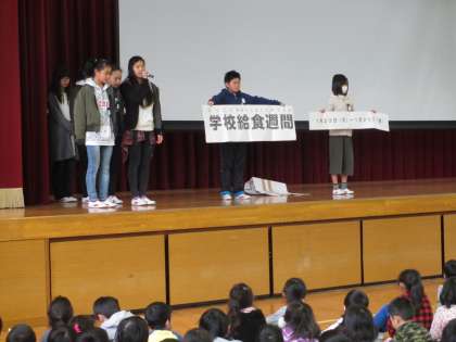 そして、委員会から給食の大切さについて発表があり、最後に特別表彰として4月から給食のおかずを一番残さなかったクラスを各学年1クラスずつ表彰しました。
