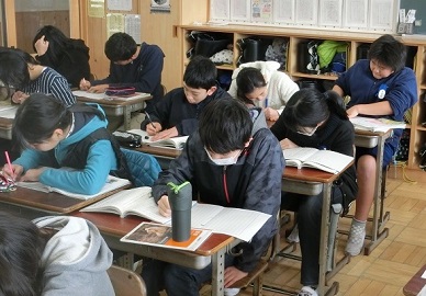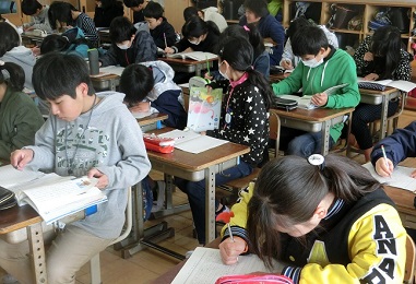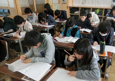 本文を読んで、自分の考えをまとめました。みんな一生懸命です。