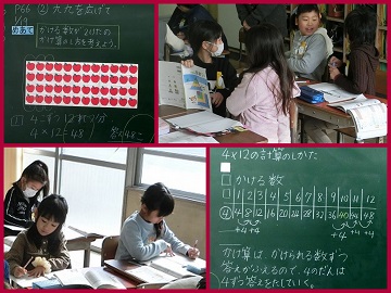かける数が1増えると、答えはいくつ増えるのかを手がかりに考えましたね。
