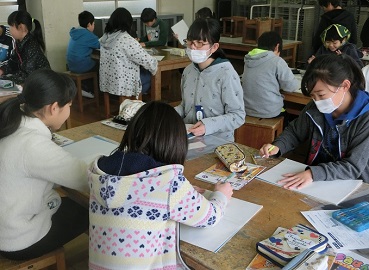 小学校の思い出を版画に表します。