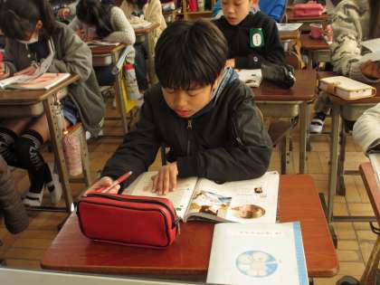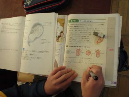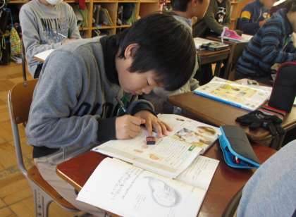 今日は教科書を見ながらまとめをしていました。みんな真剣な顔つきでノートにまとめています。