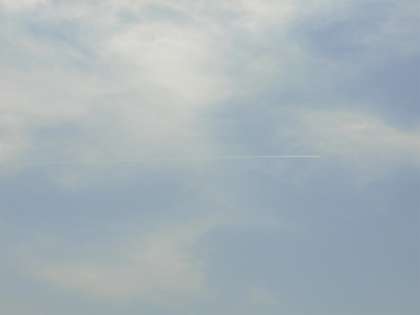 気持ちのよい天気です。ひこうき雲が見えましたので、写真に撮ってみました。明日から天気が崩れそうですので、今日の天気は貴重ですね。