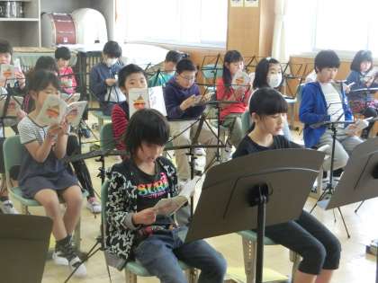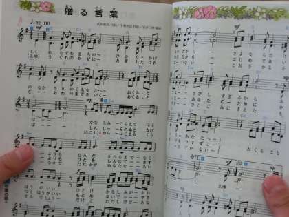 音楽の授業で、「贈る言葉」を合唱しました。「みんなのうた」というたくさんの歌が載った冊子を使っています。ご家族の中には、懐かしいなあと思われる方もみえるのではないでしょうか。