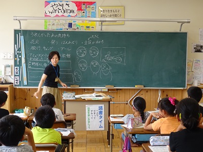 うれしかったことを絵に表していきます。この時間では,人の顔の向きによる描き分け方を教えてもらっていました。顔は正面しか描いたことない子も,いろいろな方向を見ている顔をかけるようになるといいですね。