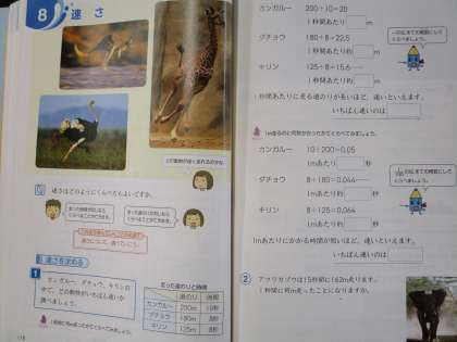 6年生の算数で、速さの学習が始まっています。だれが一番速いのかを、教科書ではカンガルーやダチョウで考えるのですが、今日のこの学級では6年生の先生方で比べていました。とても大事な学習です。この調子でしっかり勉強してくださいね!