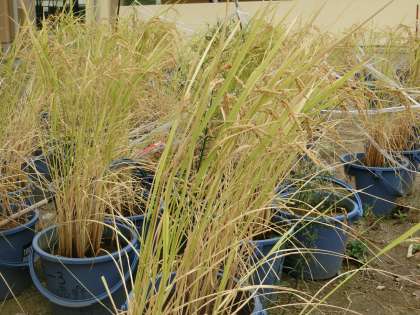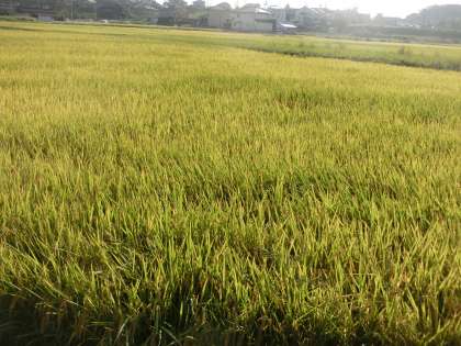 自転車をこいでいる中、ふと田んぼに目を移すと、稲穂が頭を垂れる様子が目に飛び込んできました。収穫も近いようです。5年生が育ててきた「バケツ米」もちゃんと実がついているようです。