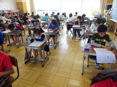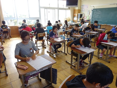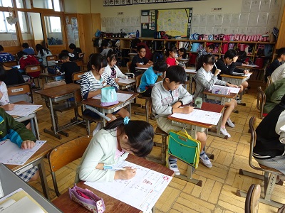 今日は先生方の出張が多い日でした。ですから,自分たちで学習を進めるクラスが多くありました。5年生のこのクラスも,担任の先生がいませんでしたが,全くおしゃべりもせずに決められた内容を進めていました。立派ですね。